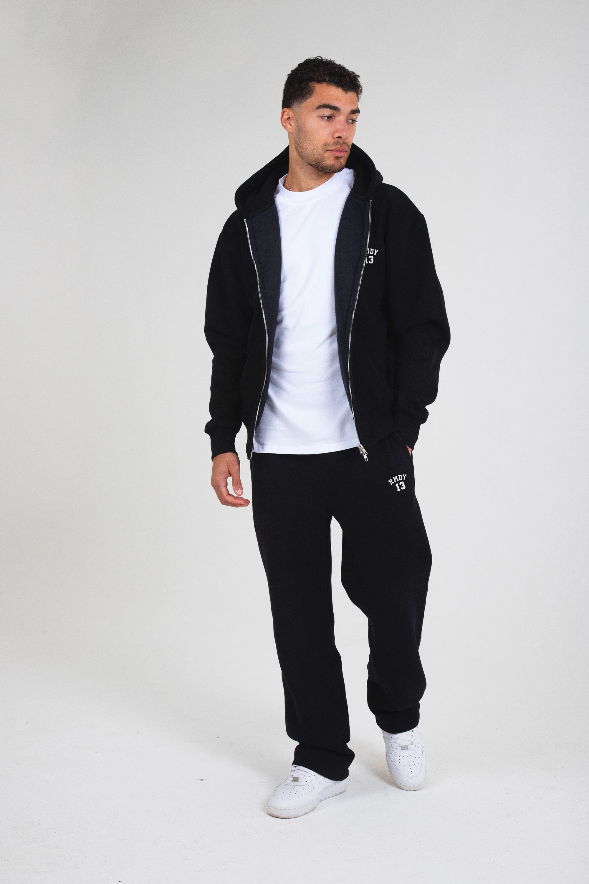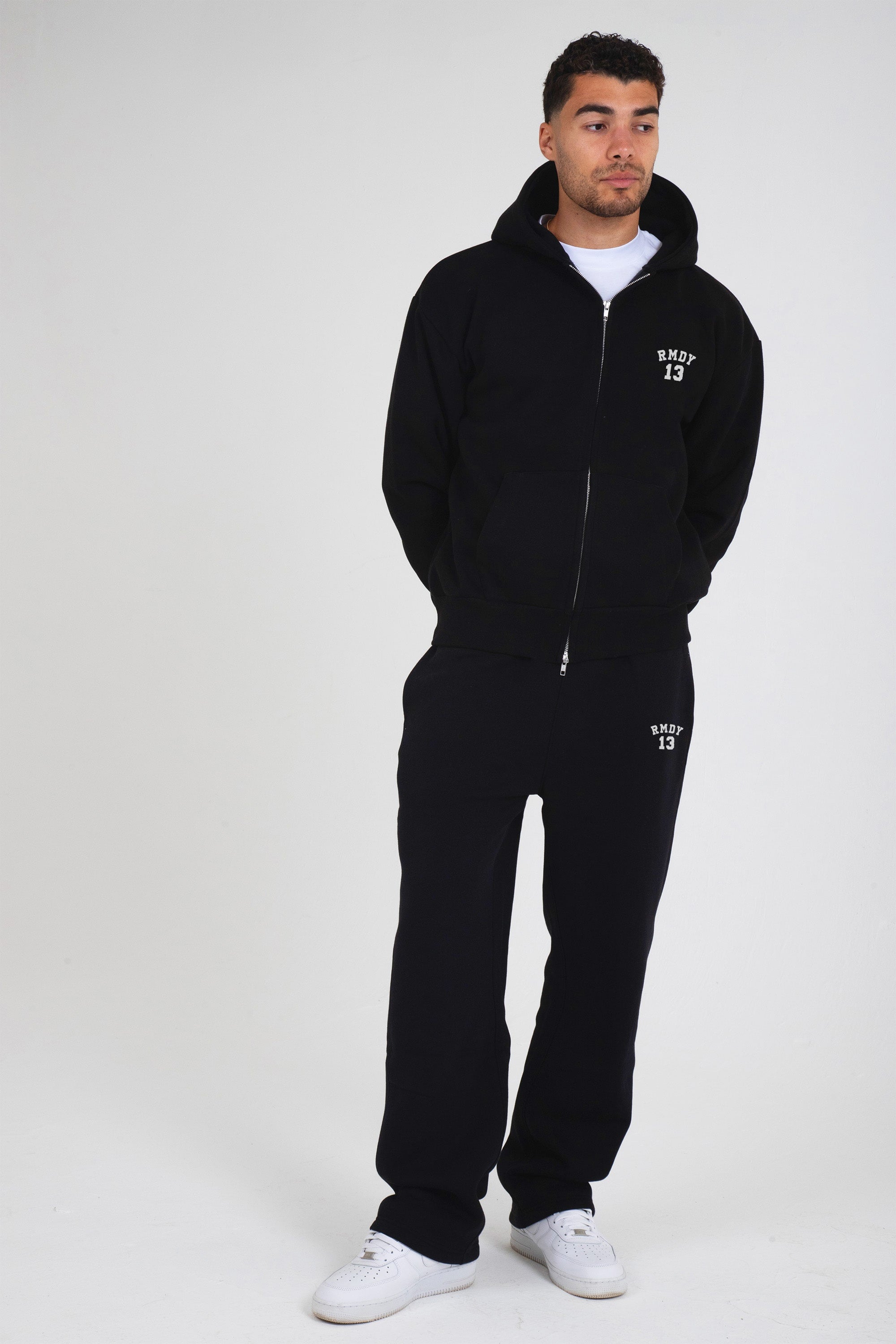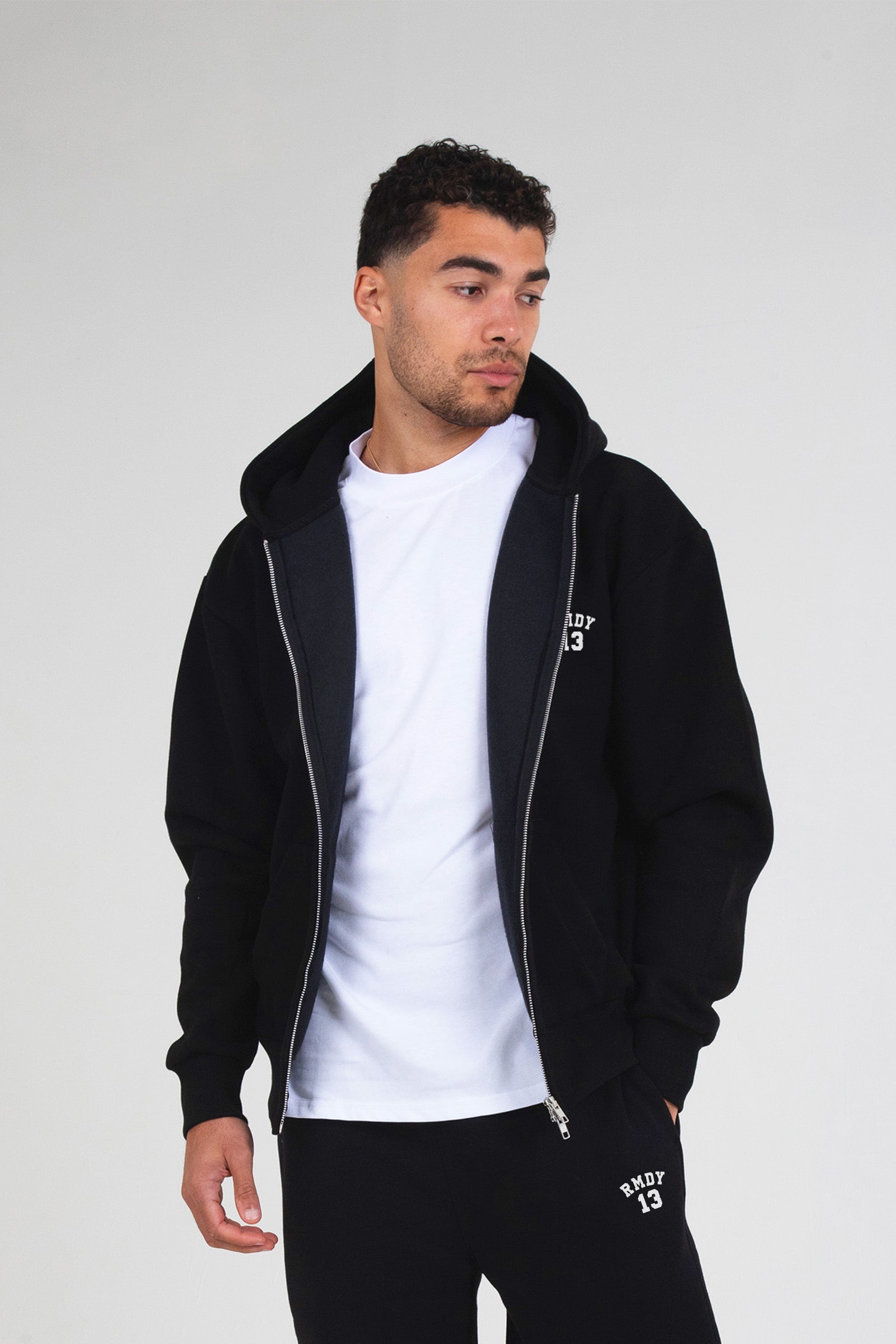 Stay sharp and comfy with the black RMDY. zip up & jogger set. Crafted from soft sponge like feel, durable cotton, this hoodie promises long-lasting wear while keeping you perfectly on trend, ready for any adventure or chill session.