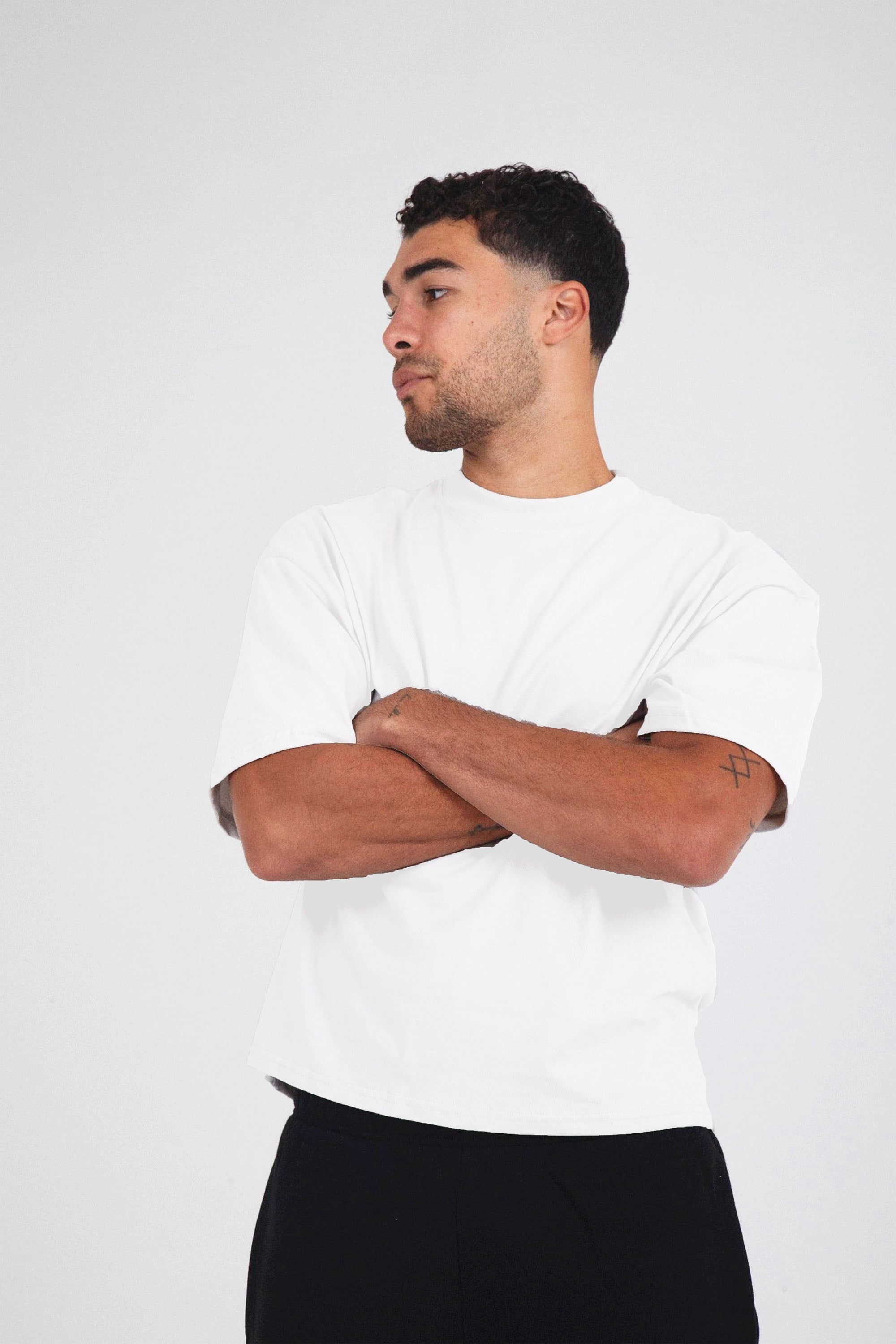 The T-shirt is constructed from a heavy-weight relaxed boxy fit 220gsm combed cotton. The visual highlight is the is the structure and fit of the silhouette and the overall minimal street aesthetic it compromises.